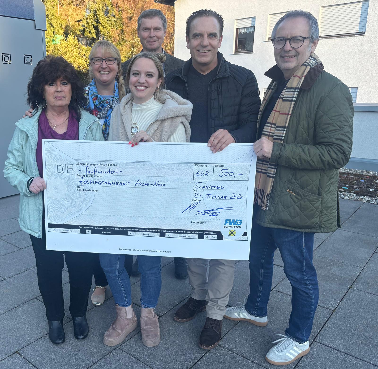 Die FWG Schmitten bedankt sich ganz herzlich bei Bettina Gerlowski-Zengeler und dem gesamten Team des Hospiz Arche Noah für die besondere Pflege und fürsorgliche Begleitung der Gäste in dieser wertvollen Einrichtung. Mit der Spende möchte die Wählergemeinschaft ihre Anerkennung ausdrücken und die wichtige Arbeit des Hospizes aktiv unterstützen.